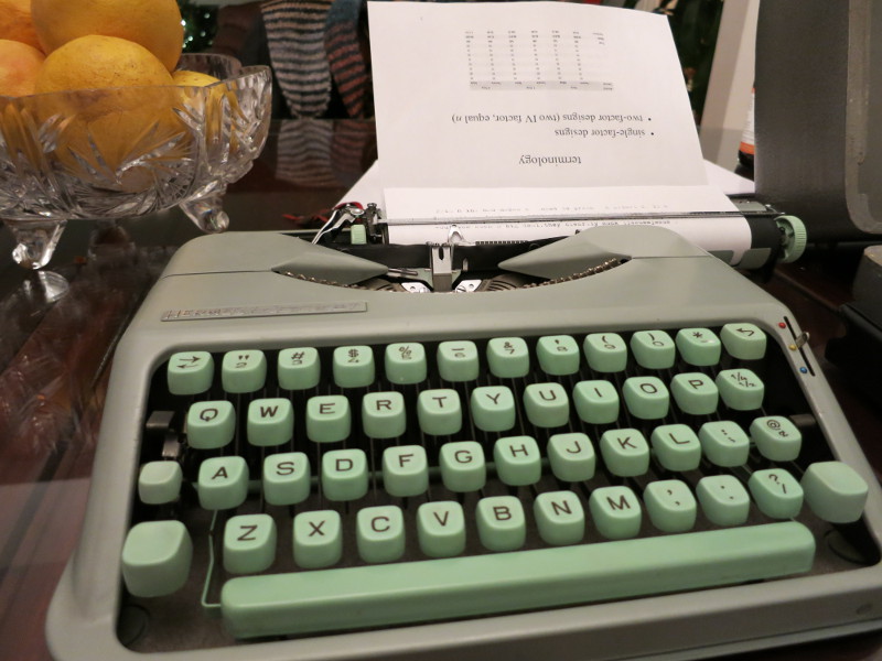 I can’t wait to write a few letters on it and send them off. It’s quite different from a computer–there’s a particular way of striking the keys to get the letters crisp on the paper. Less forgiving, but much more tactile, than a computer. Time to get out the address book (ironically, digitally maintained).