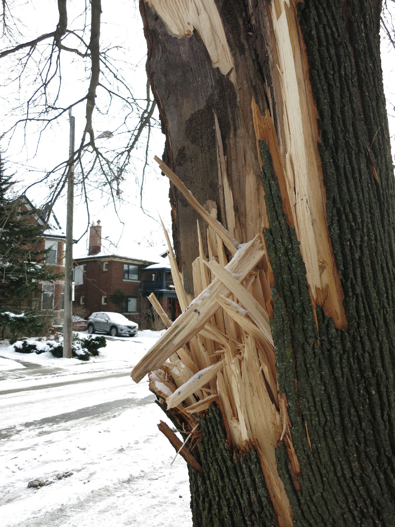 Everything looks a bit washed out these late December days–white sky, dull grey snow, with the monochrome currently broken up by the heaps of broken branches from the ice storm.